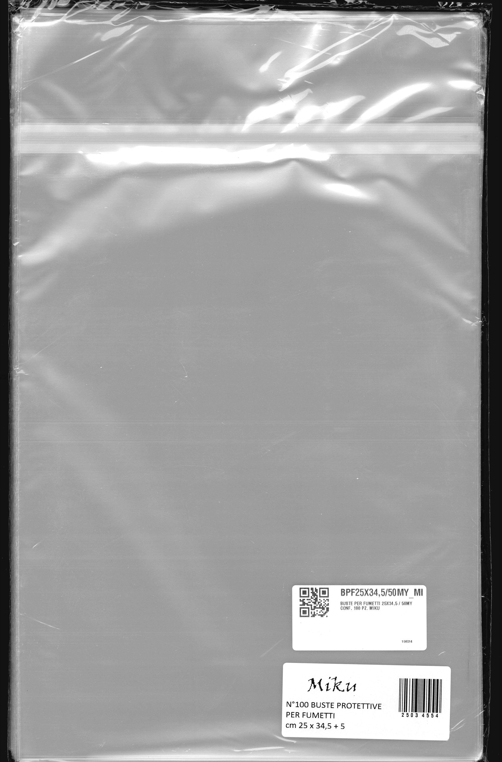 Buste per Album Figurine Panini in polipropilene neutro da 50 MICRON auto-chiudenti con striscia adesiva e patella (250×345 mm). Misura indicata per album figurine (Panini), rivista tipo Il Mago, volumi cartonati vari e altri di pari formato.