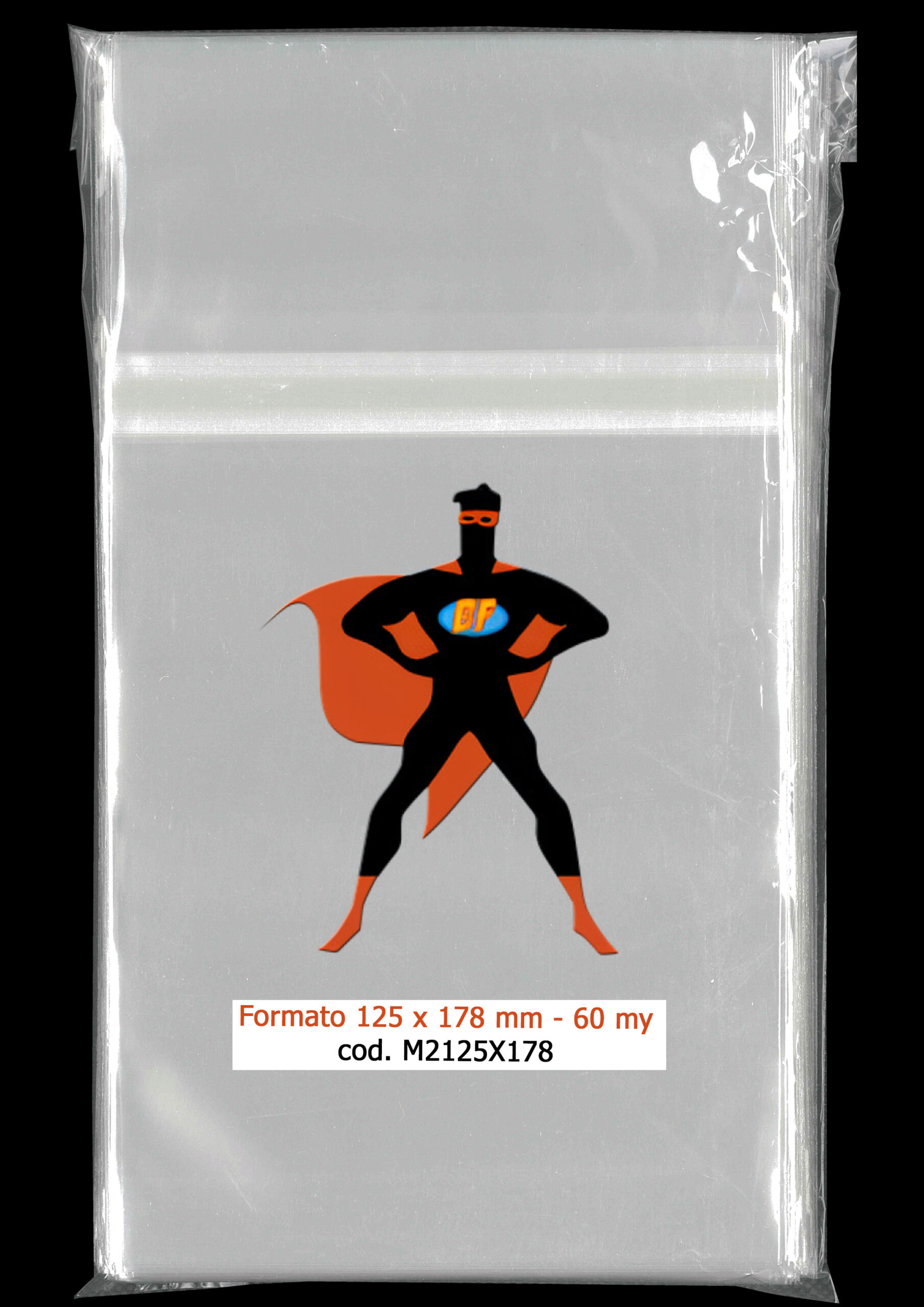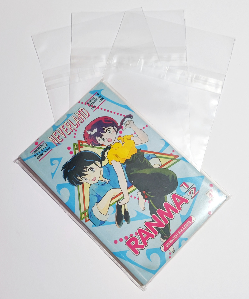 Buste per Manga tipo Dragon Ball 1^ edizione in polipropilene neutro da 60 micron auto-chiudenti con striscia adesiva e patella (125×178 mm). Prodotto Italiano
