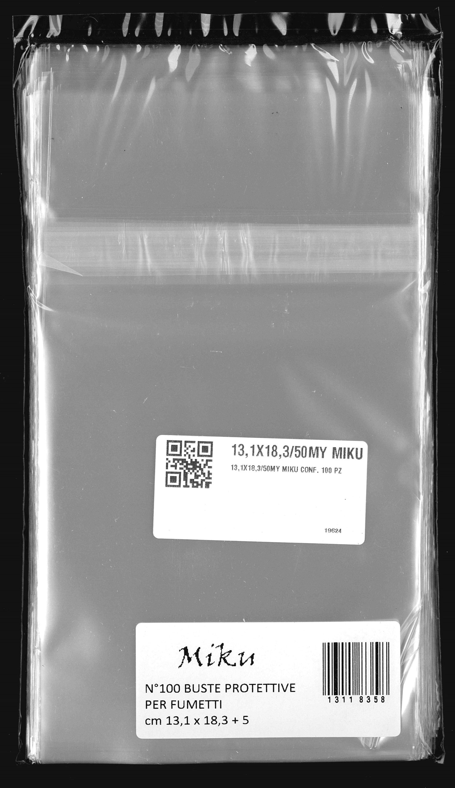 Buste protettive per fumetti 131×183 mm in polipropilene neutro 50 MICRON auto-chiudenti con striscia adesiva e patella. Prodotto Italiano
