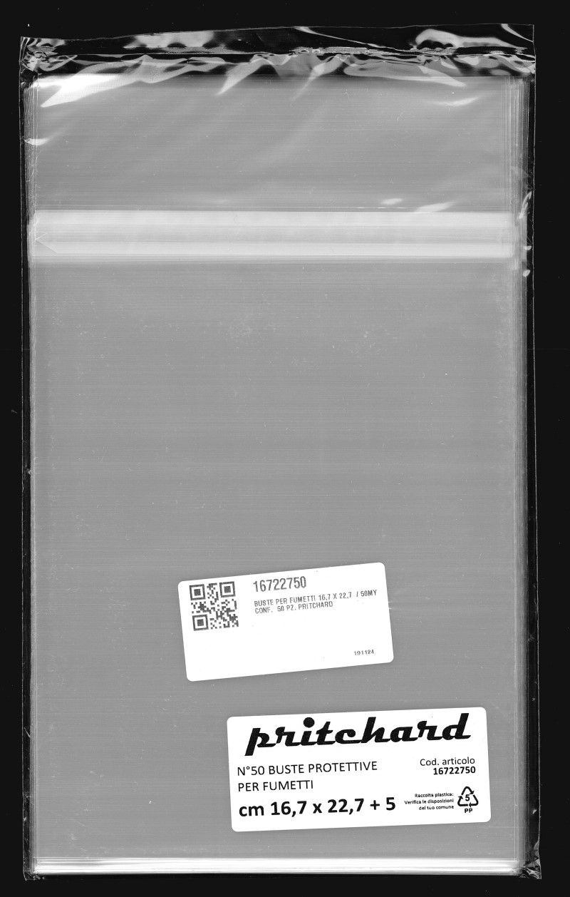 Buste protettive per fumetti 167×227 mm in polipropilene neutro da 50 MICRON, auto-chiudenti con striscia adesiva e patella. Prodotto Italiano