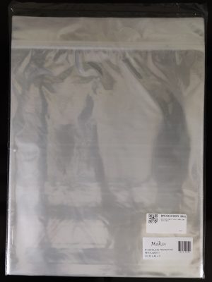 Buste per fumetti tipo Grandi Formati in polipropilene neutro da 50 MICRON auto-chiudenti con striscia adesiva e patella (350×420 mm). Prodotto Italiano